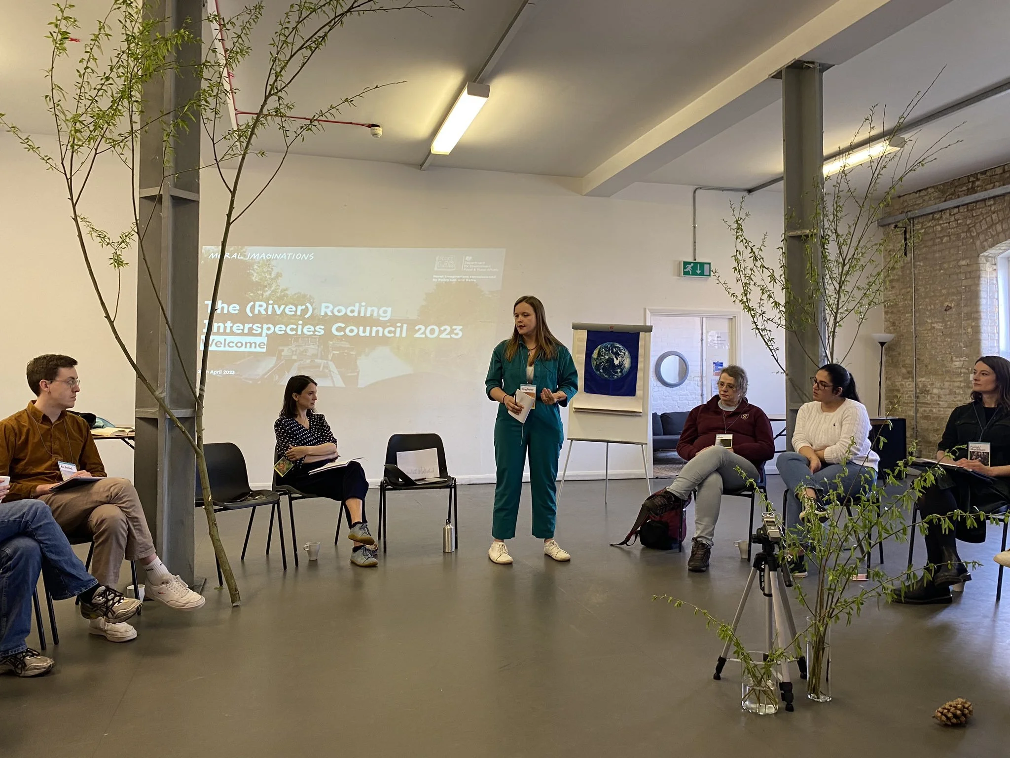 In April 2023, Moral Imaginations was funded by Policy Lab UK and DEFRA (Department for Environment, Food and Rural Affairs) Futures to support the organisation of an Interspecies Council with civil servants, local councillors, non-profit workers, activists and residents of the River Roding. It was part of the Water Post 2043 project aimed at “exploring what decision-making in relation to the freshwater system could look like post 2043, if transformed”.
